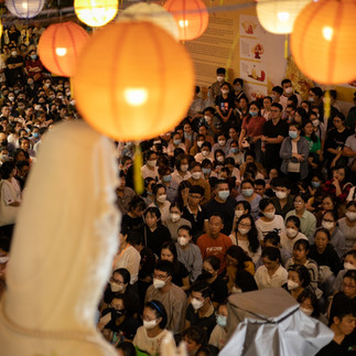 Sài Gòn cuối tháng 10 vẫn còn làm người ta e dè với những cơn mưa bất chợt, muốn đến lúc nào thì đến, muốn đi khi nào thì đi, mấy ai đoán trước được. May mắn thay, hôm đó tiết trời dịu nhẹ như chiều lòng chúng sanh. Từ rất sớm, dòng người đến cầu Pháp ở chùa Minh Đạo đã nối dài ra đến tận đường lớn. Không ít người vô tình rảo bước ngang qua, vì một chút hiếu kỳ đã dừng lại đứng nghe, rồi tinh tấn dưới cơn mưa Pháp hơn 2 tiếng đồng hồ. Hẳn là có được nhân duyên lớn lắm.